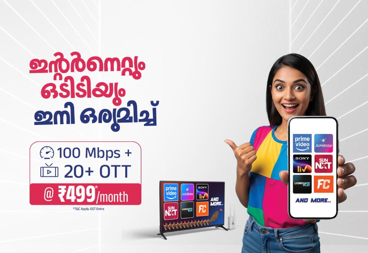 Asianet Broadband Fiber is a better option than regular broadband connections in Kerala because it offers more stable and consistent internet connectivity. Our internet connection ensures minimal downtime, faster downloads and upload speeds. Additionally, our affordable pricing, flexible plans and excellent customer service make us a preferred choice for customers across Kerala.