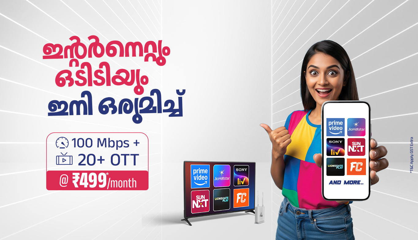 Asianet Broadband Fiber is a better option than regular broadband connections in Kerala because it offers more stable and consistent internet connectivity. Our internet connection ensures minimal downtime, faster downloads and upload speeds. Additionally, our affordable pricing, flexible plans and excellent customer service make us a preferred choice for customers across Kerala.