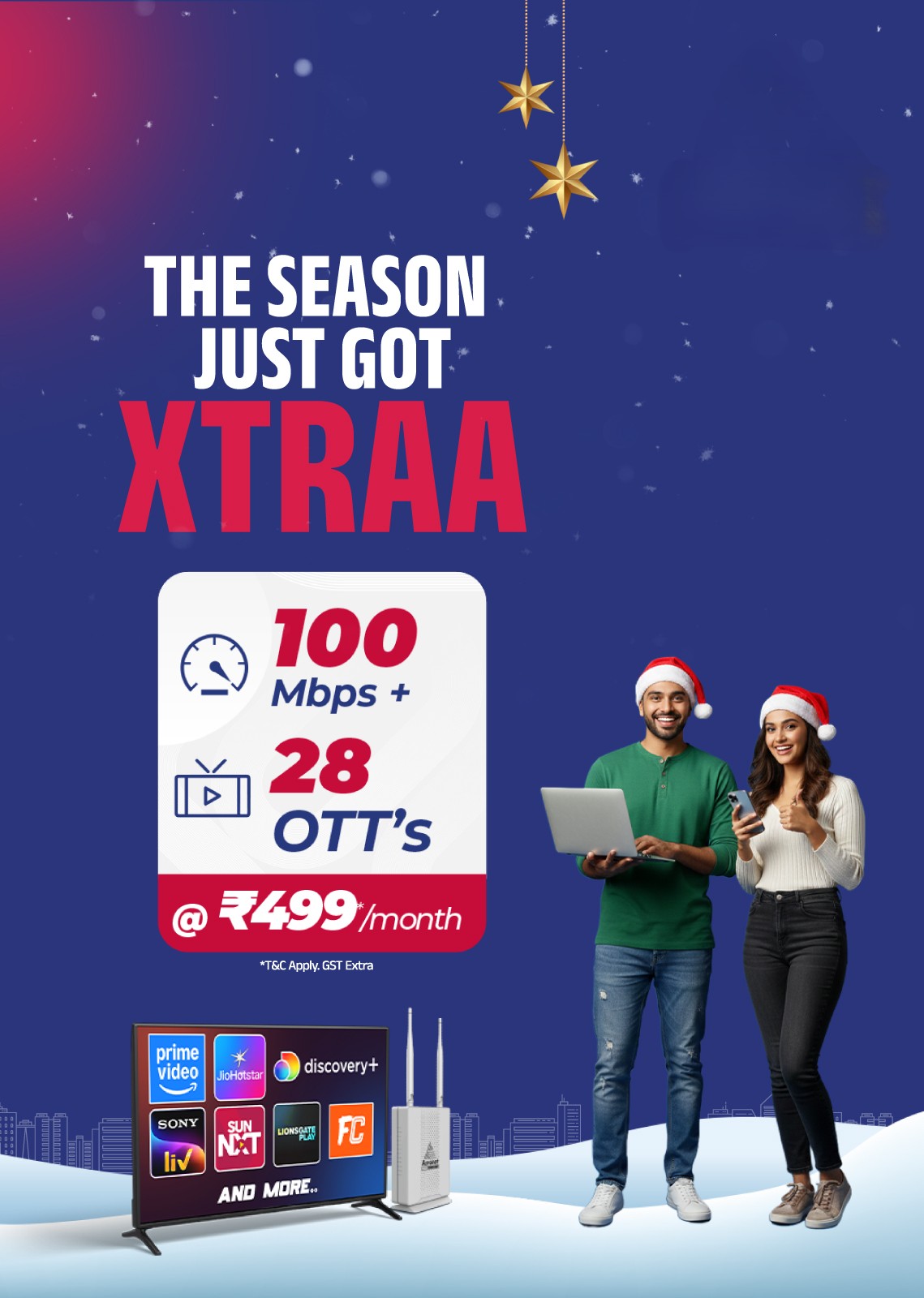 Choose a branded internet service provider that offersconvenient short-term and long-term unlimited high speed internet plans and is backed by a strong 24×7 customer service team.